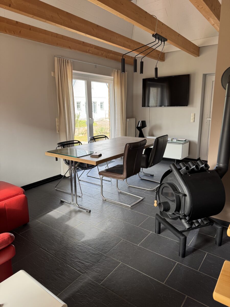 Der UMPF ist ein sauberes, modernes Ferienhaus. Es gibt eine voll ausgestattete Küche. 2 Große FlachbildTVs. Bad mit Dusche+Wanne zusätzlich. 2 Toiletten. Im 1. Stock gibt es die Schlafmöglichkeit für die 3. Person. Auf einer nach unten offenen Etage. Schlafen auf der Galerie. Also KEIN klassisches Kinderzimmer, deswegen wird auch nicht an Kinder unter 8 Jahren vermietet. Oben steht ein großes Doppelbett, ein kleiner Tisch mit Stuhl.